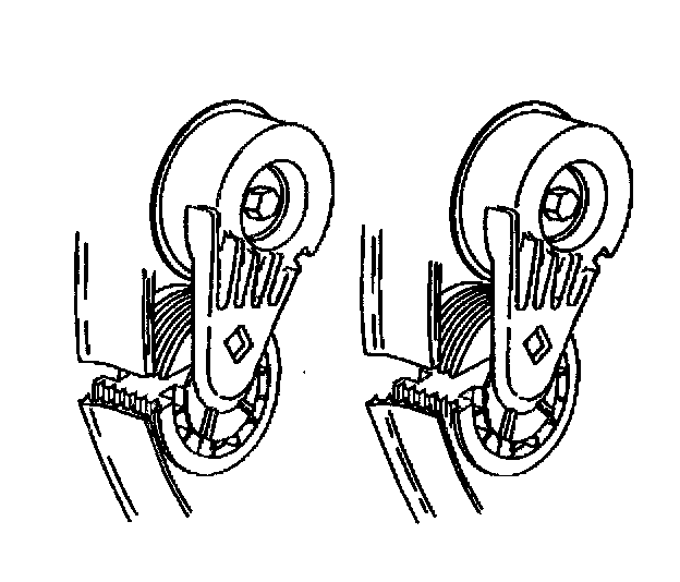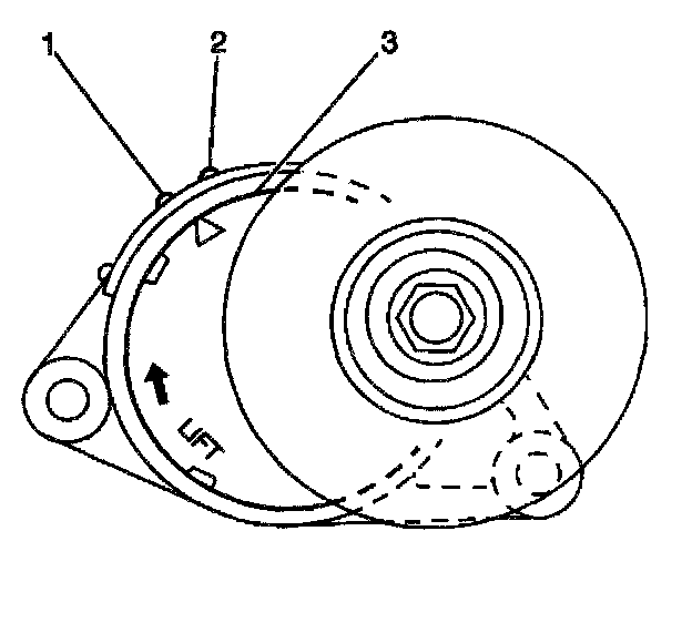 3. When installing a used drive belt, observe the indicator on the tensioner.