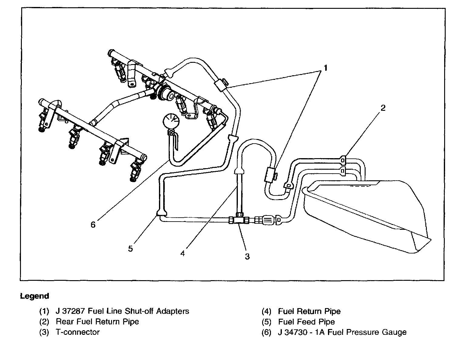 3. A fuel system that drops more than 34 kPa (5 psi) in 10 minutes has a leak in one or more of the following areas.