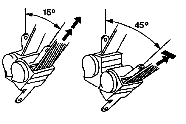 4.3. Verify that the seat belt webbing can be pulled from the retractor at an angle of 15 degrees or less and cannot be pulled from the retractor at an angle of 45 degrees or more.