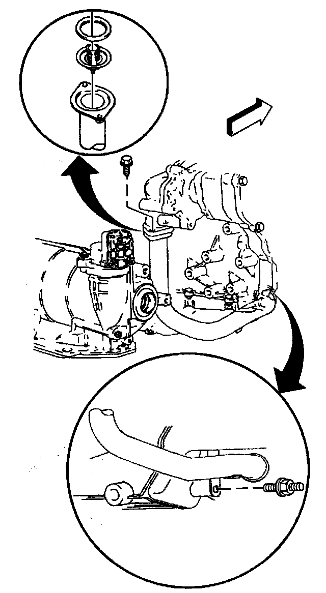 3. Remove the coolant inlet pipe bolt through the exhaust manifold.
