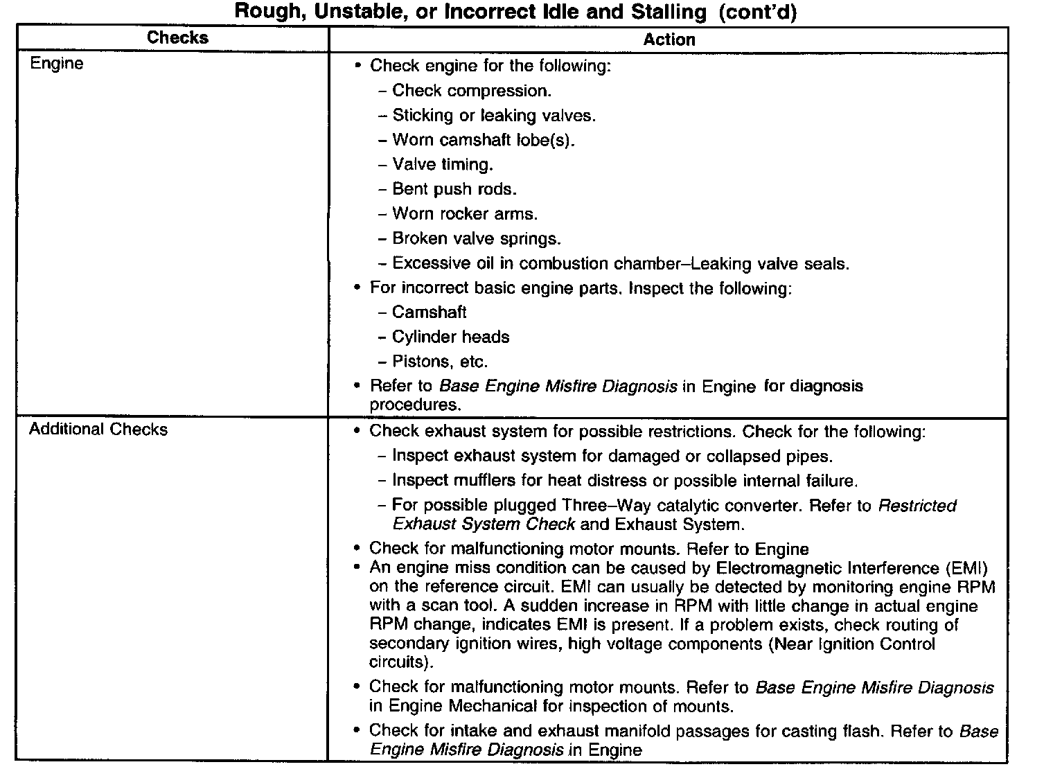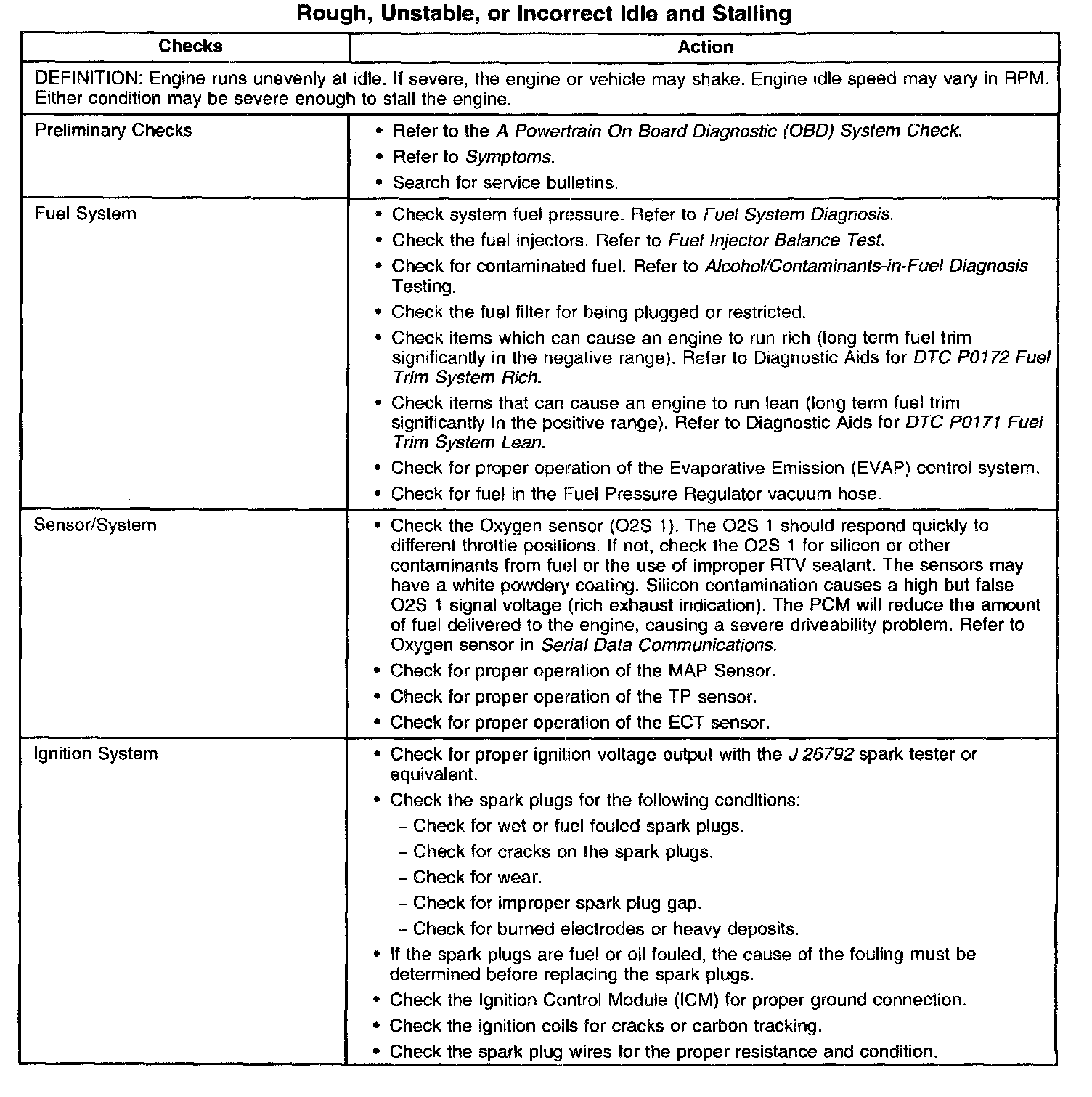 Rough, Unstable, or Incorrect Idle and Stalling