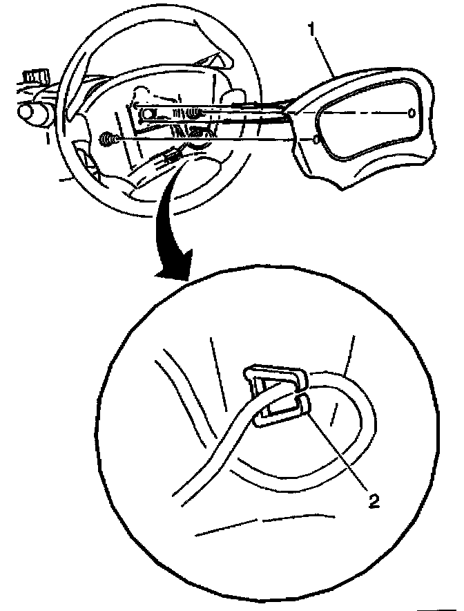 2. Install the inflator module (1) to the steering wheel.