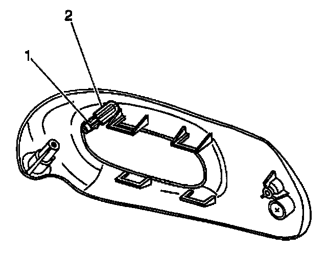 1. Install a new barrel clip (1) to the trim panel upper barrel post (2)