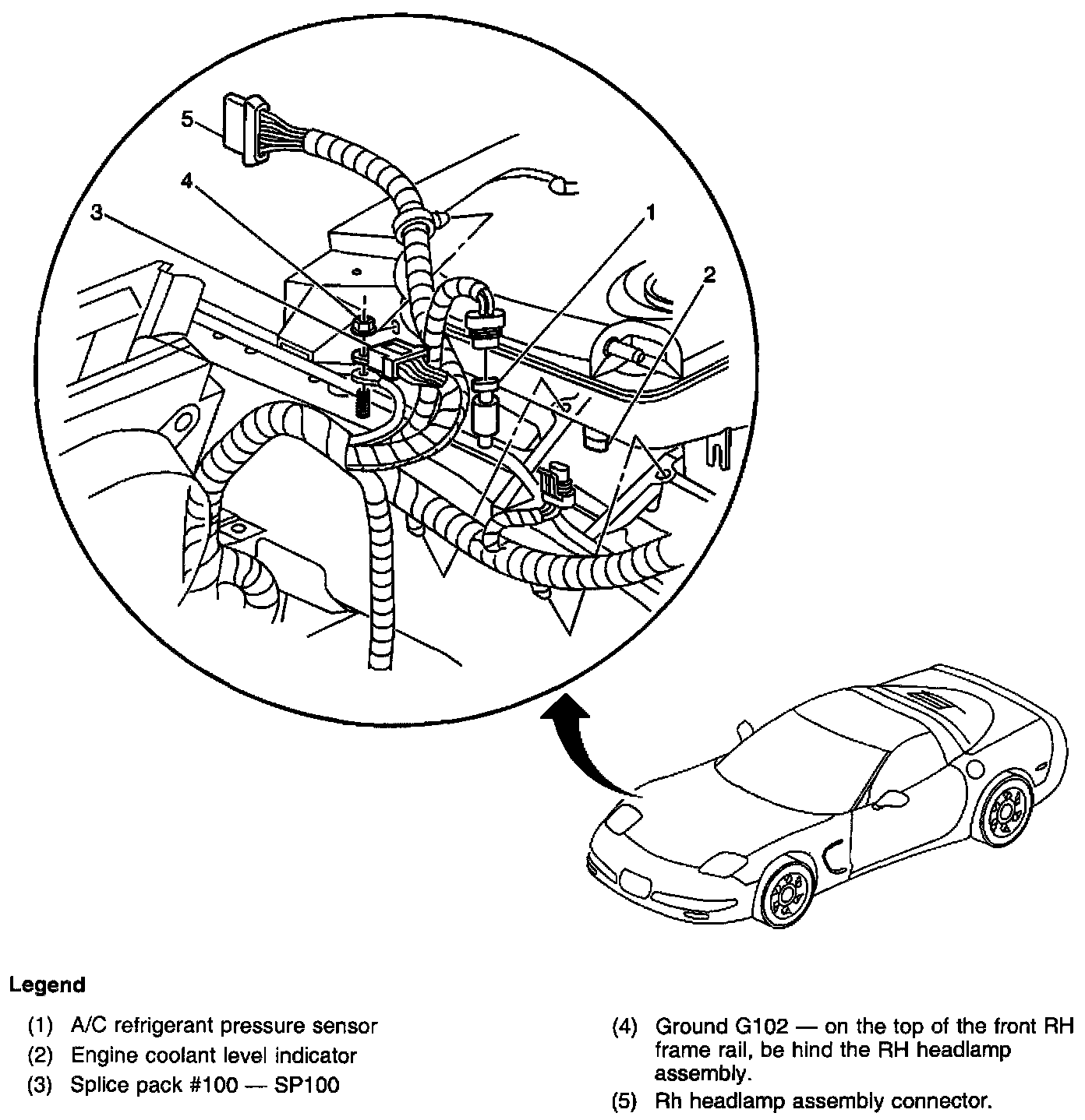 Engine Compartment Behind The RH Headlamp Assembly: