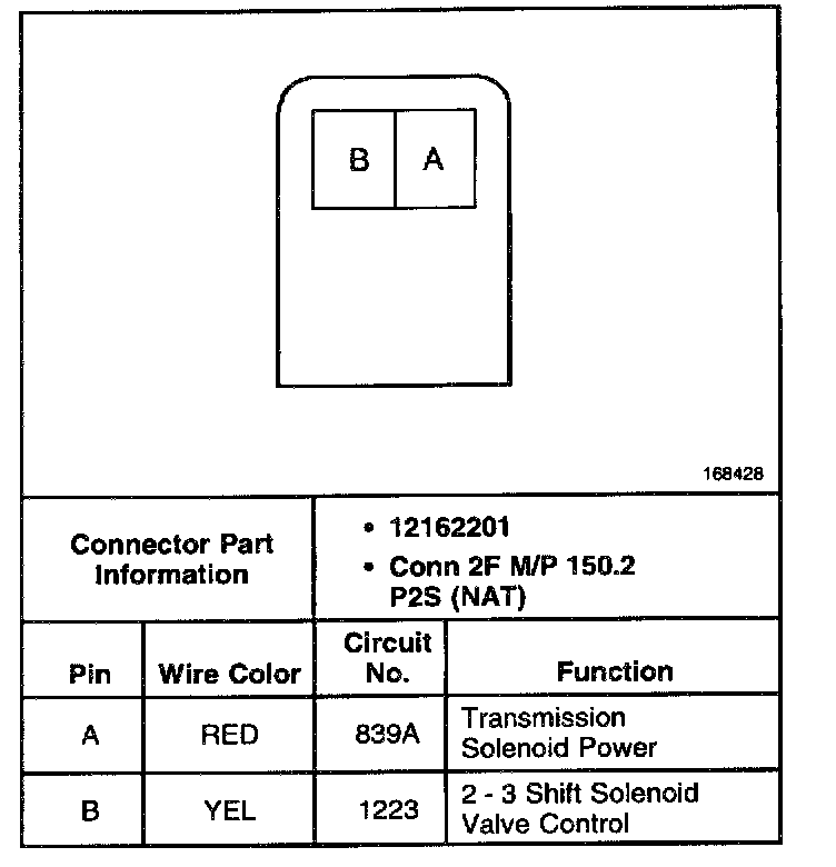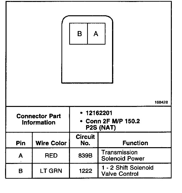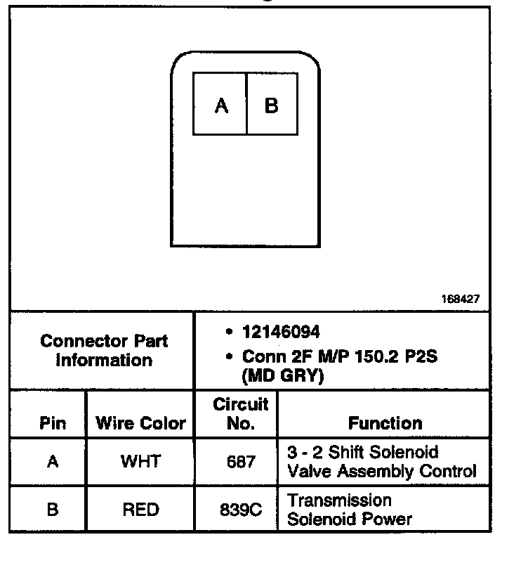 1 - 2 Shift Solenoid (SS) Valve Connector, Wiring Harness Side