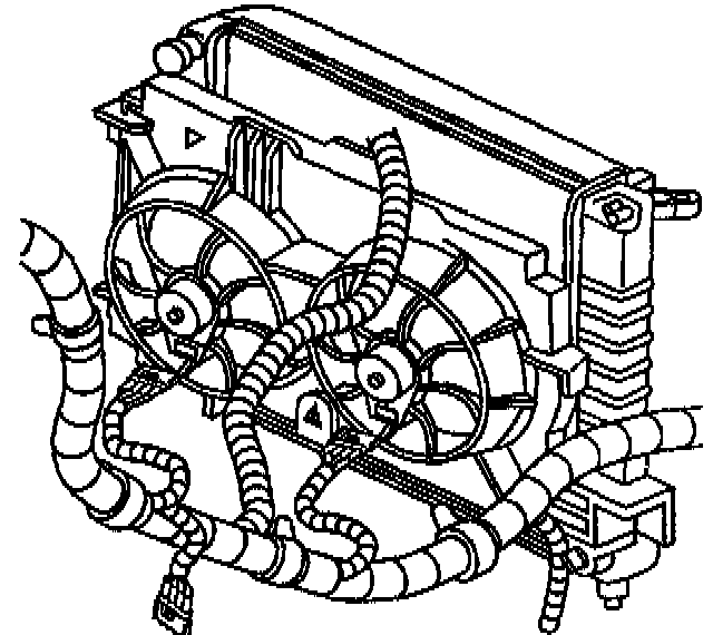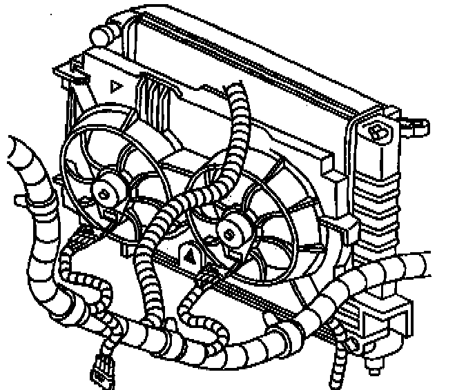 6. Install the fan motor electrical connectors and harness to the fan shrouds.