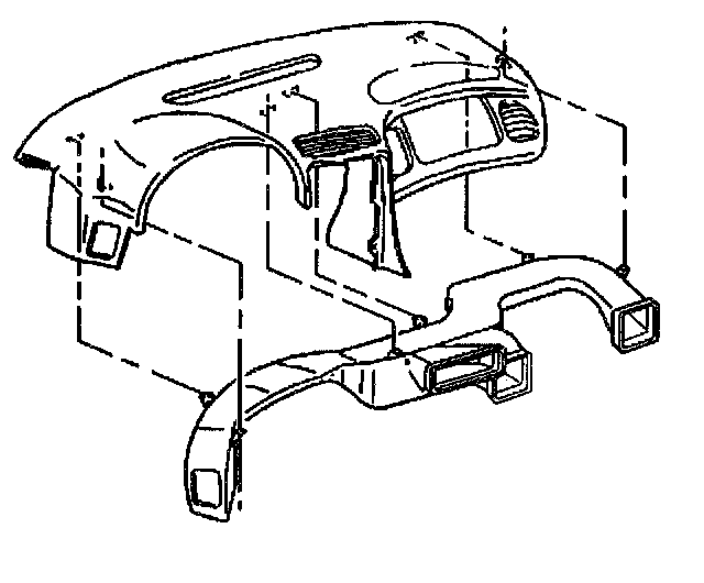 2. Remove the screws retaining the air distribution duct to the underside of the upper trim pad.