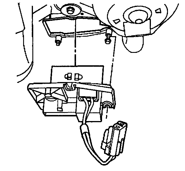 1. Position the blower motor resistor forward retaining slots onto the forward retaining screws and the upper portion of the resistor into the HVAC module.