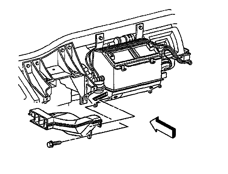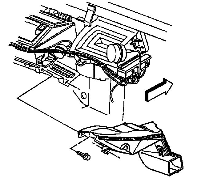 13. Install the RH floor air outlet duct to the HVAC module.