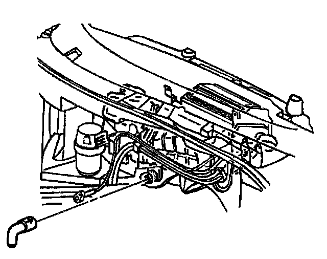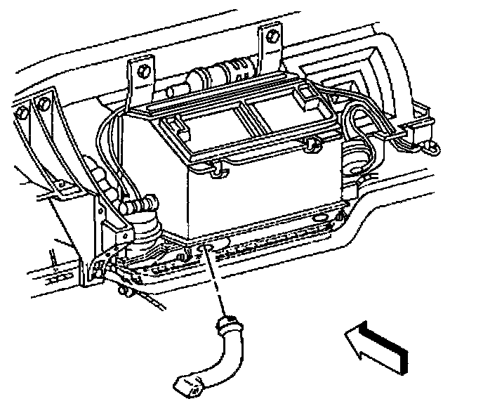14. Remove the evaporator and HVAC module drain tube from the HVAC module.