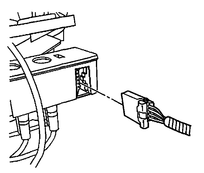 9. Connect the wiring harness electrical connector to the blower motor control module.