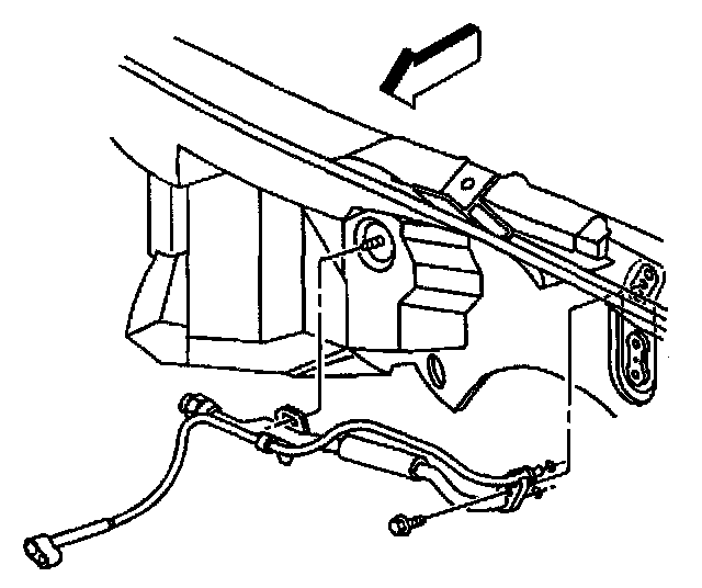 10. Remove the heater pipe to heater core retaining bolt.