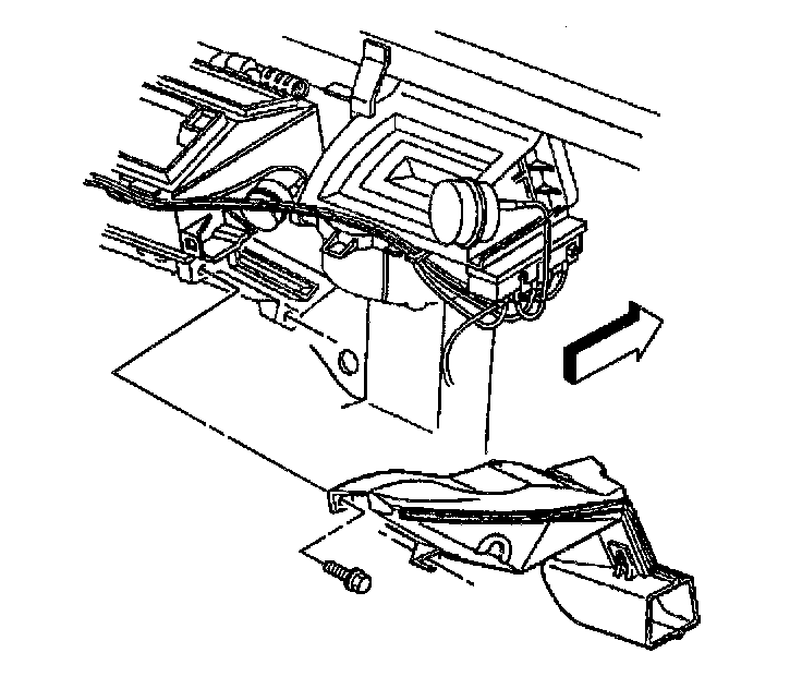 12. Install the RH floor air outlet duct to the HVAC module.