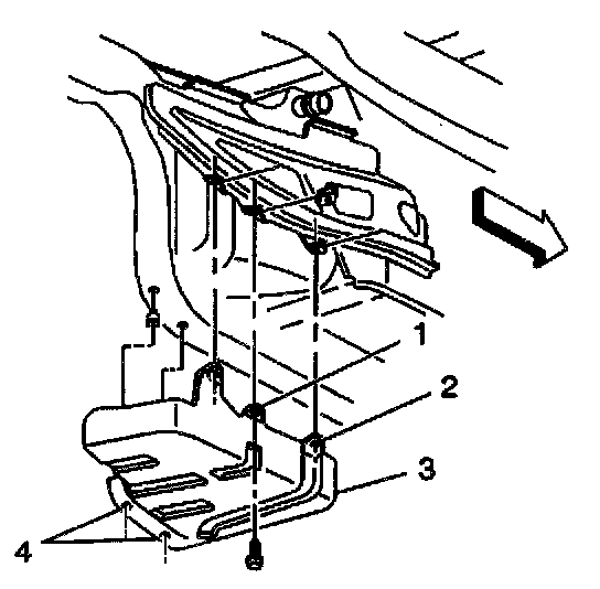 ^ Tighten the fuel tank shield mount nut to 25 N.m (18 lb ft).
