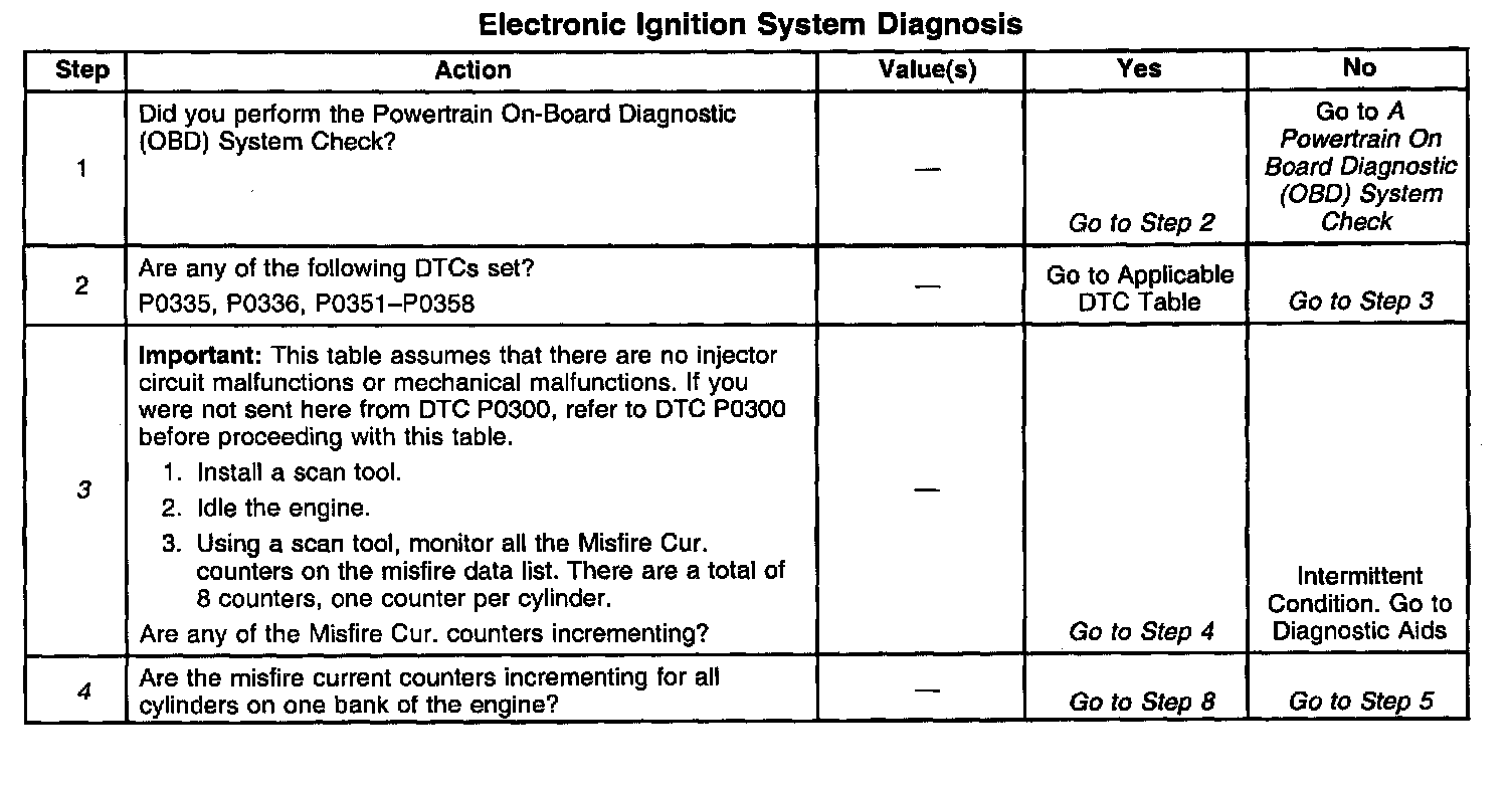 The numbers below refer to the step numbers on the diagnostic table.