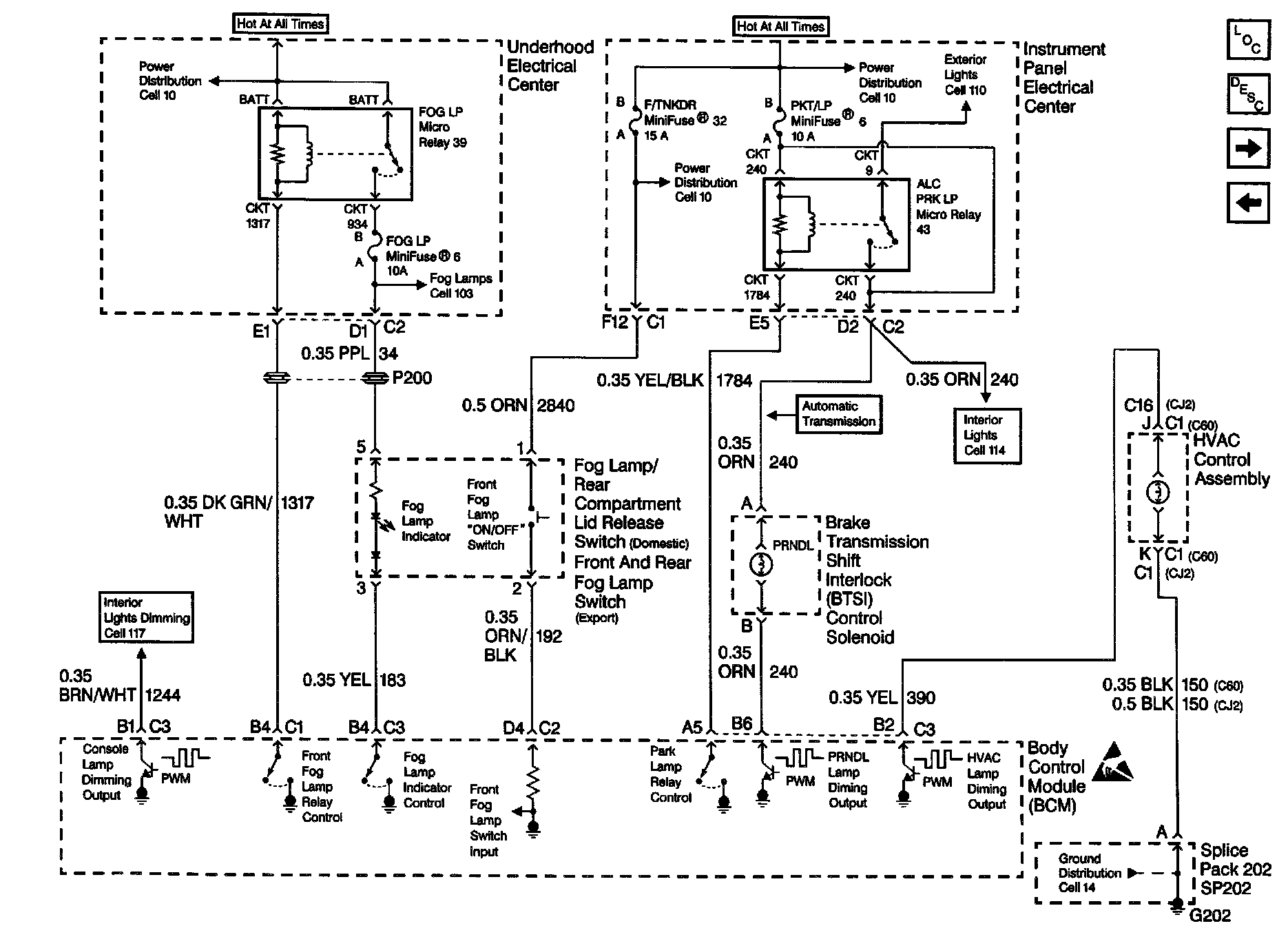 Fog Lamp Circuit and ALC PRK LP Relay