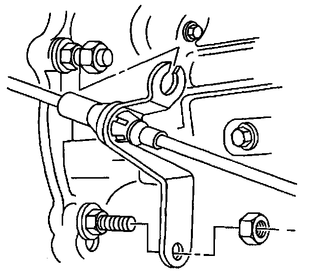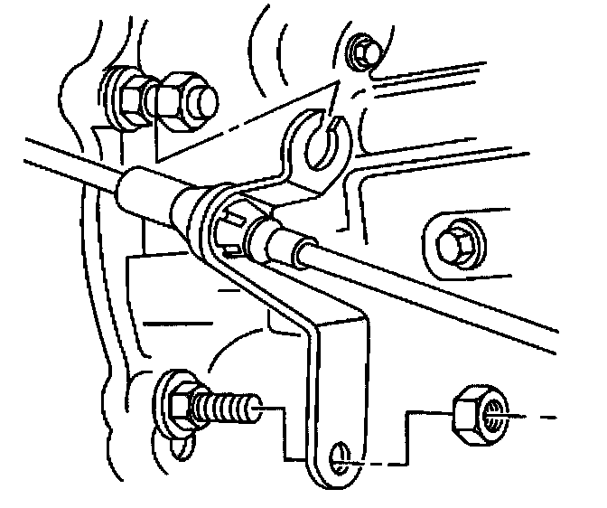 15. Remove the nuts retaining the transmission shift cable bracket to the transmission.