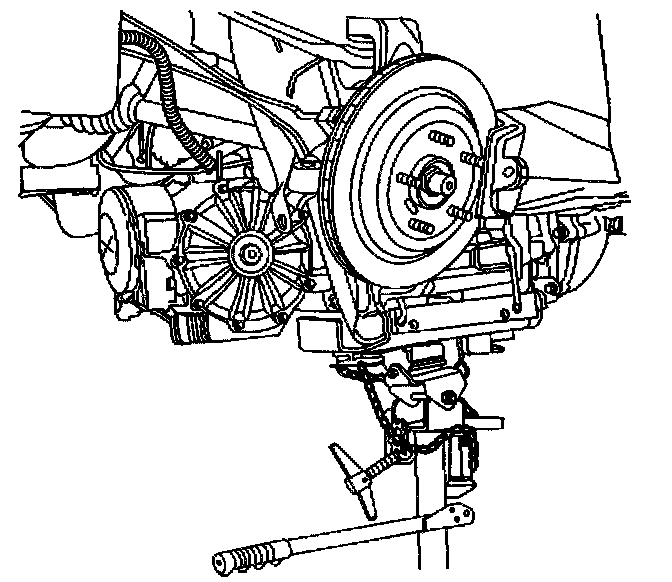Notice: When lowering and removing the rear of the driveline, observe the clearance between the rear of the transaxle assembly and the underbody to prevent damage.