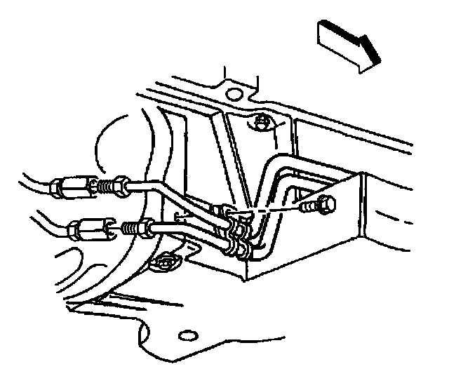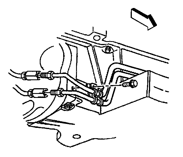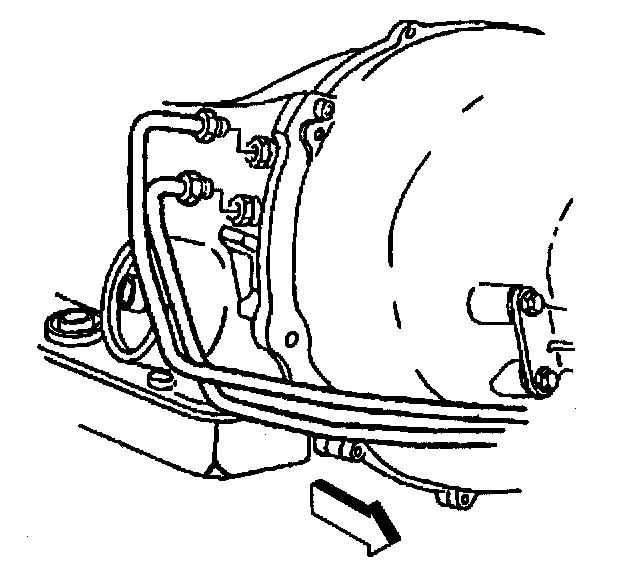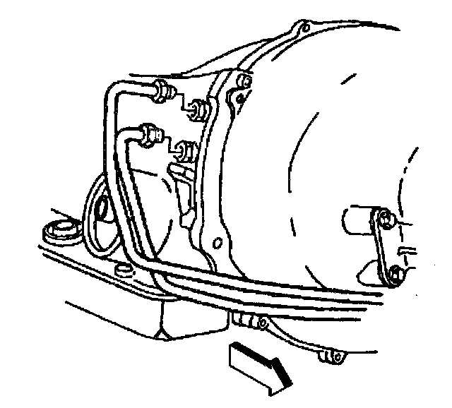 63. Disconnect the transmission oil cooler rear pipes from the fittings on the transmission, then cap the pipes and plug the transmission fittings to prevent contamination.