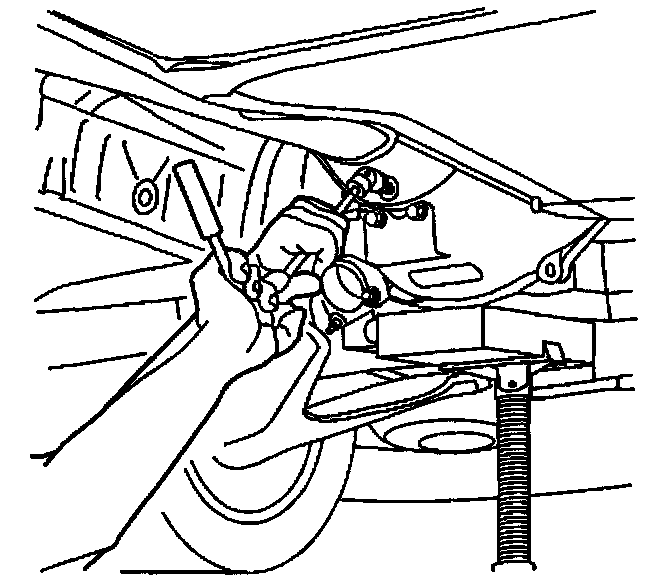 22. Disconnect the lower ball joint from the suspension knuckle. Refer to Knuckle Replacement in Steering and Suspension.