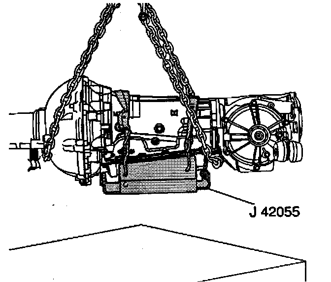 12. Using the lift device, raise the driveline off the workbench and position the driveline with the J 42055 onto a transmission jack.