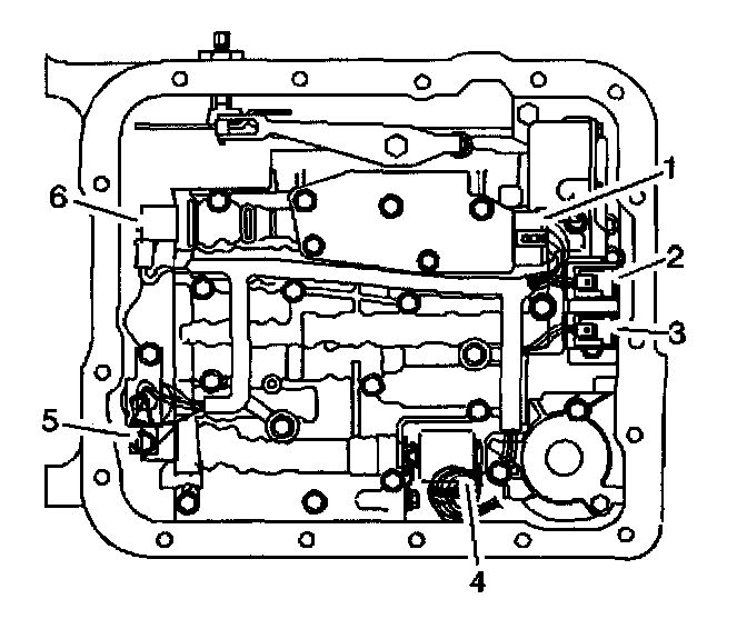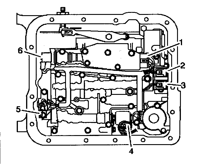 2. Remove the transmission oil pan and filter. Refer to AT Fluid/Filter Changing.