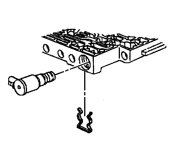 6. Install the pressure control solenoid retainer and retaining bolt.