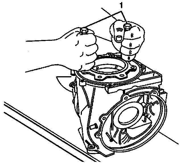 20. Install two M10 x 1.5 bolts (1) into the flange of the pinion cartridge. Using the bolts as a handle, remove the pinion cartridge from the differential carrier.