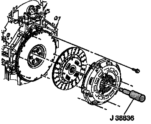 8. Using the J38836, align the clutch driven plate to the pilot bearing.