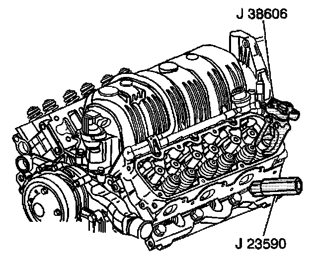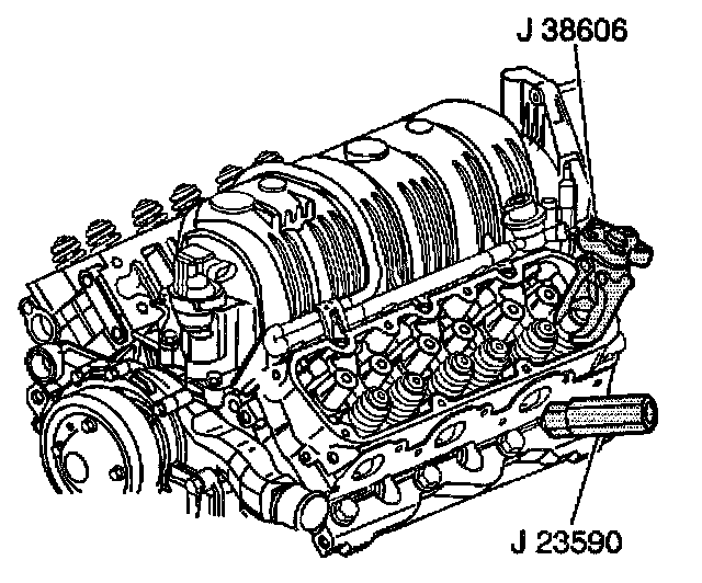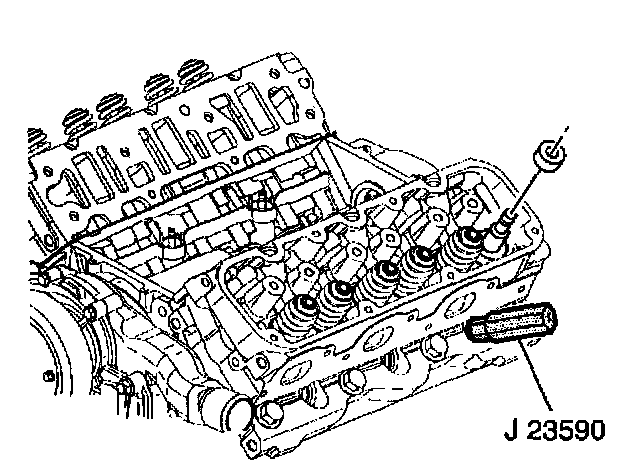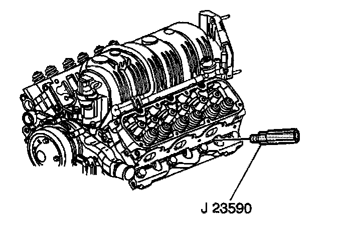 4. Install the J 23590 to the spark plug port and apply compressed air in order to hold the valves closed.