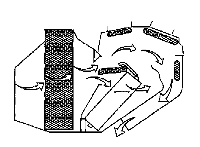 Most of the air flows through the floor outlets. A small amount of air flows through the defroster duct.