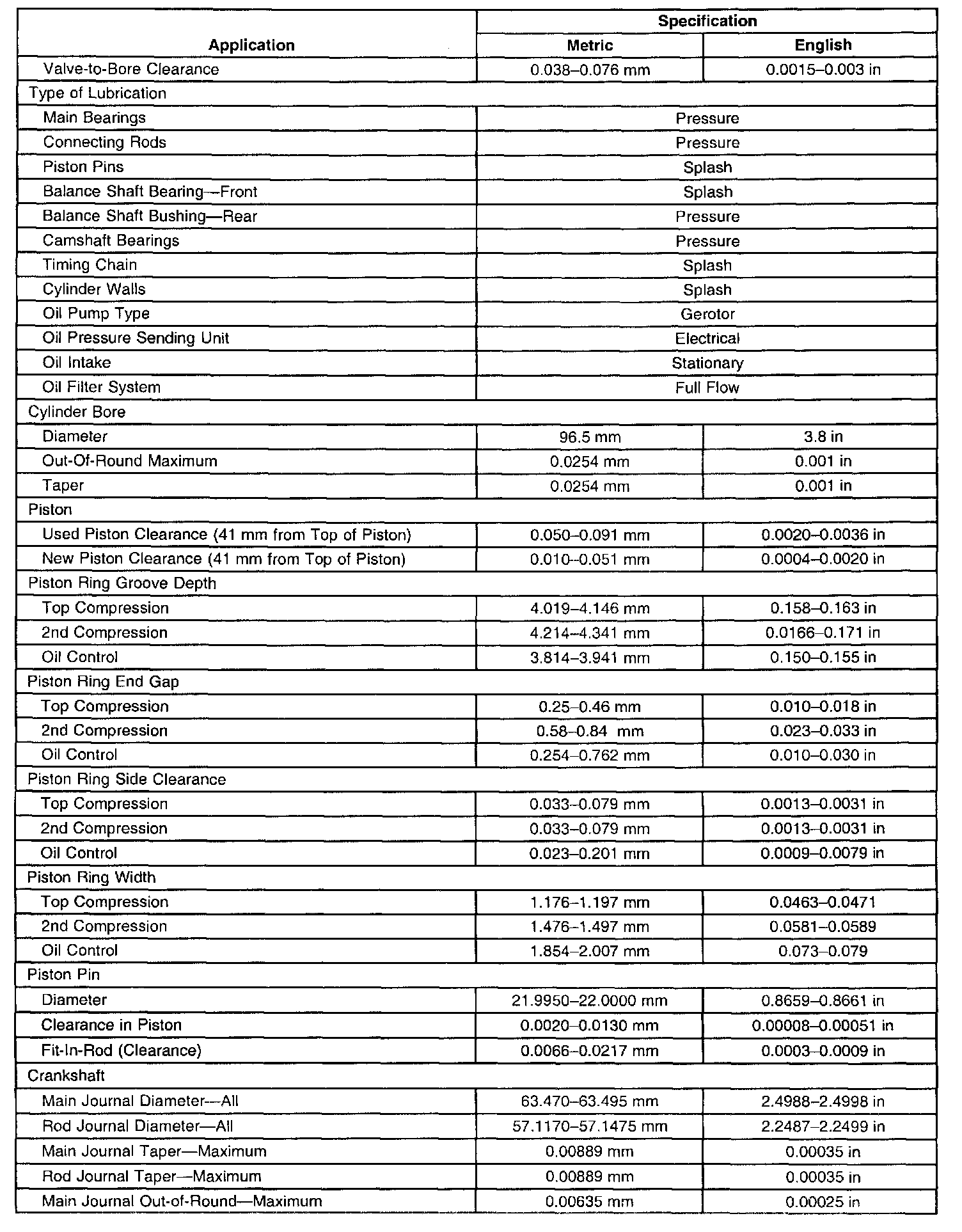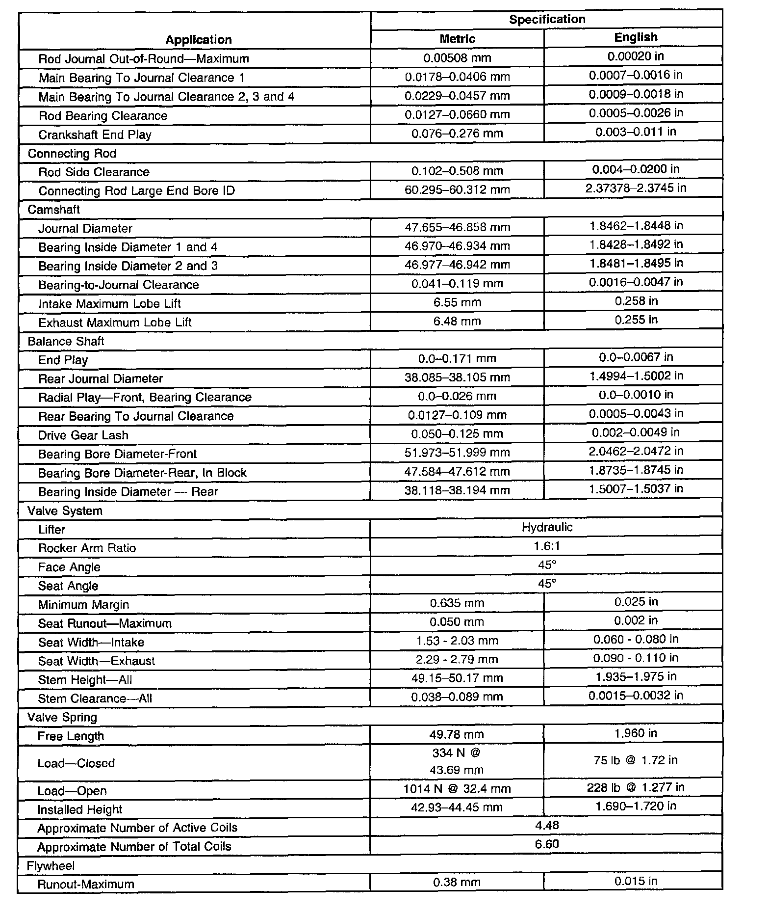 Engine Mechanical Specifications