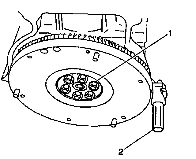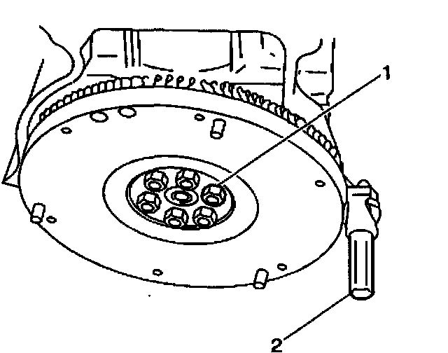 4. Apply GM P/N 12345493 or equivalent, to the flywheel retaining bolt threads.