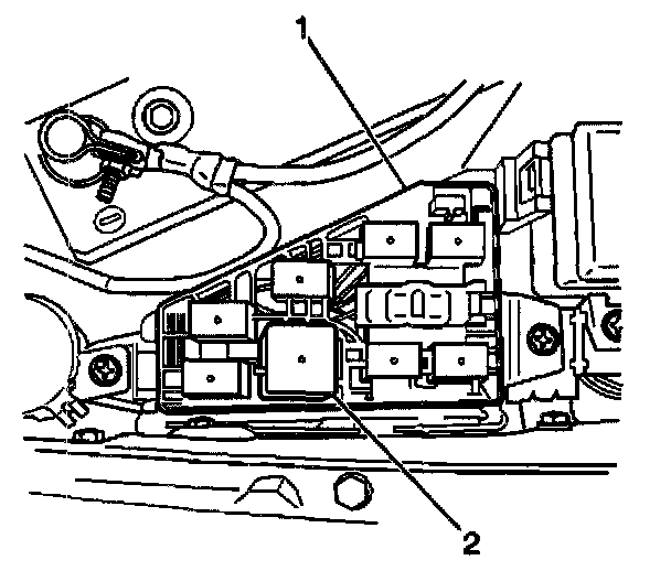 1. Install the Electronic Brake Control Relay (2) into the underhood electrical center (1).