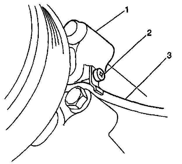2. Install the clutch coil wire (3) retainer to the compressor. Secure the retainer with the 1 screw (2).