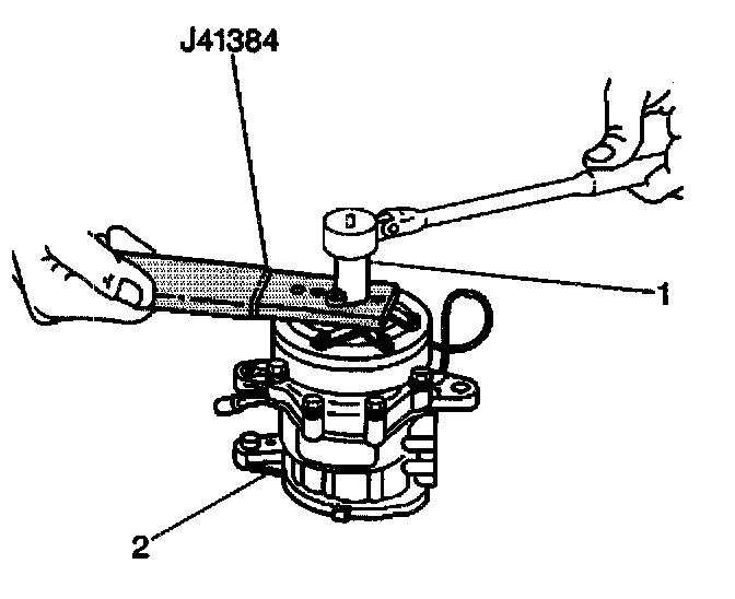 6. Install the pressure plate washer and the nut to the compressor drive shaft using J41384.