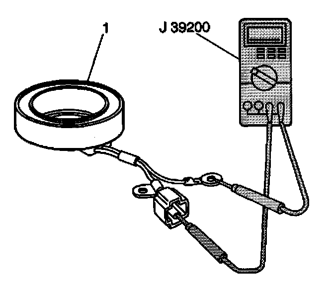 11. Measure the clutch coil resistance using the J 39200. Replace the clutch coil if the resistance is not within specifications.