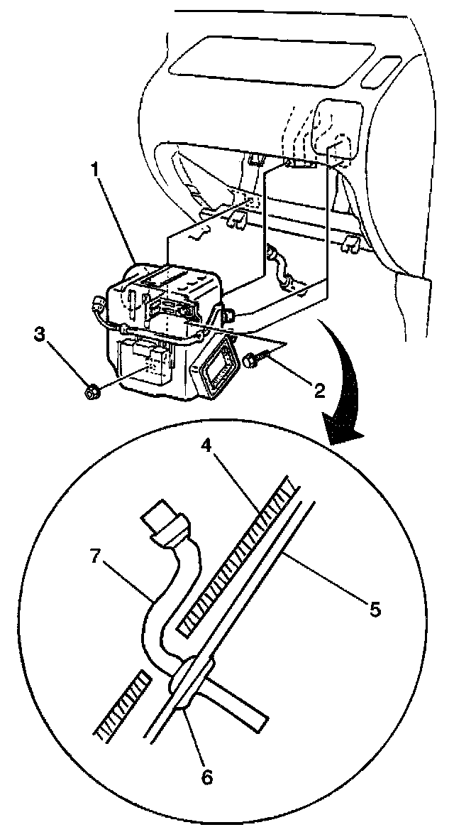 7. Remove the drain hose (7) from the evaporator case.