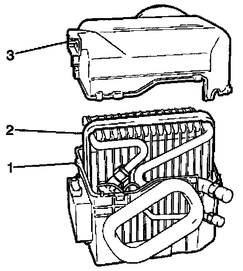 1. Install the evaporator core (2) to the evaporator case.