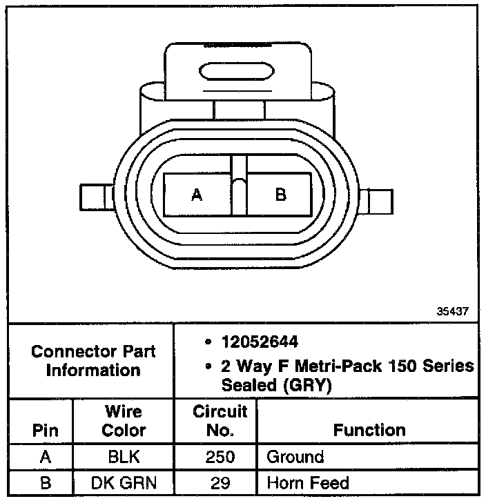 Connector end views show the cavity or terminal locations for all the related 2-pin or larger connectors shown in the system schematic(s). The drawings show the connector's face as seen after the harness connector has been disconnected from a component or mating connector. Unused cavities are left blank in the table.