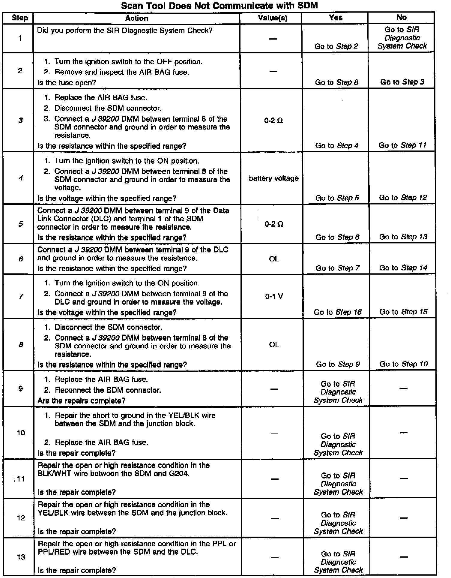 When measurements are requested in this table, use J 39200 Digital Multimeter with the correct terminal adapter from J 35616-A Connector Test Adapter Kit. When a check for proper connection is requested, refer to Intermittents and Poor Connections. When a wire, connector or terminal repair is requested, use J 38125-B Terminal Repair Kit.