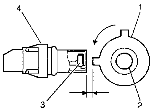 The Camshaft Position (CMP) sensor (4) contains a signal generator (hall switch) (3). A camshaft signal rotor (1) is press fit onto the camshaft (2). The CMP sensor has a specified air gap between the sensor core end and the camshaft signal rotor. A digital signal is generated by the CMP sensor when the signal rotor turns. The CMP sensor's digital signal is sent to the Powertrain Control Module (PCM).