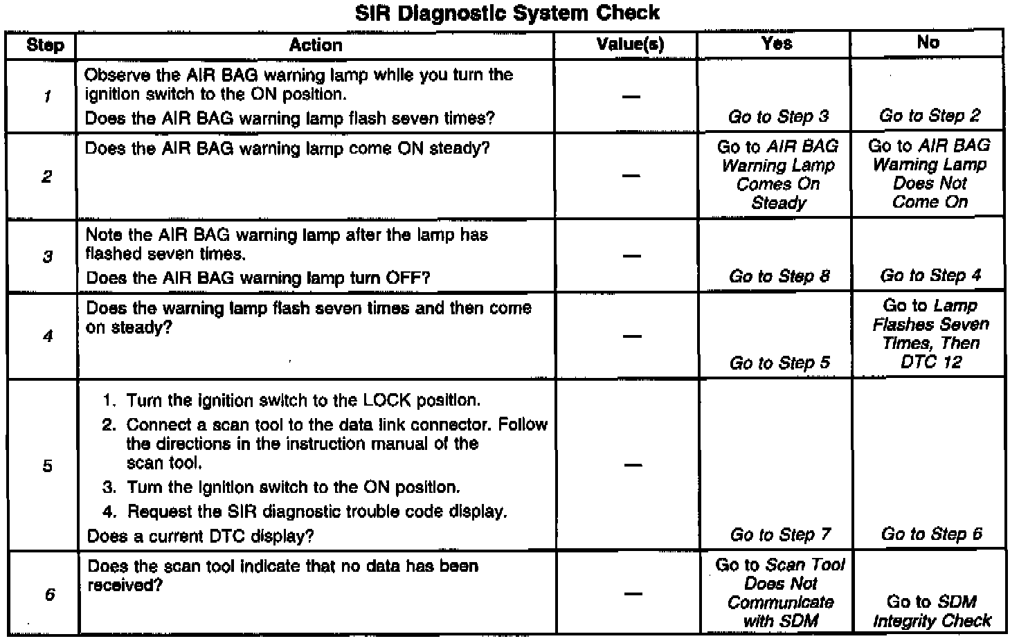 4. This step determines whether the SDM is flashing DTC 12.