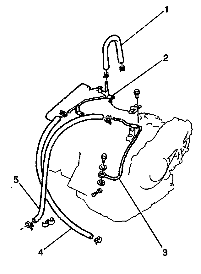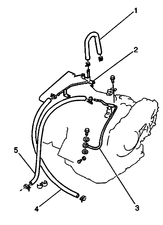 Removal Procedure1. Remove the hose retainer clip from the fluid cooler hoses (1, 4, 5).