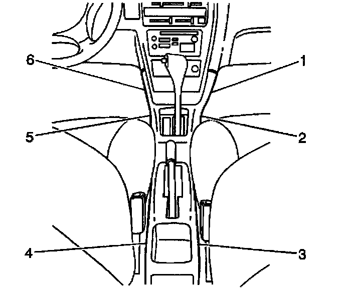 Removal Procedure1. Remove the 6 screws from the console (1, 2, 3, 4, 5, 6).
