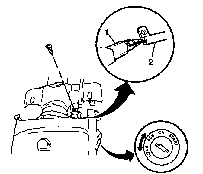 Important: After tightening the interlock cable bolt, set the shift selector lever (1) to the P position. Verify that the ignition switch can be turned from the ACC to the LOCK position and that the ignition key can be removed from the ignition switch. With the shift selector lever in any position other than P, verify also that the ignition switch CANNOT be turned from the ACC to the LOCK position.