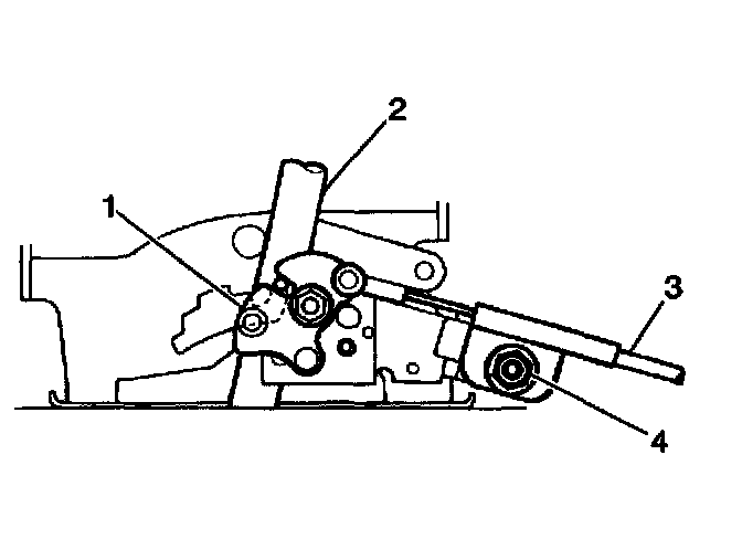 9. Remove the interlock cable (3) from the selector lever (2) housing bracket.