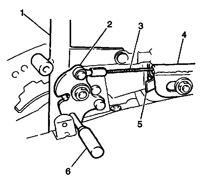 12. Allow the retaining spring (5) to position the interlock cable (3) into the bracket (4).