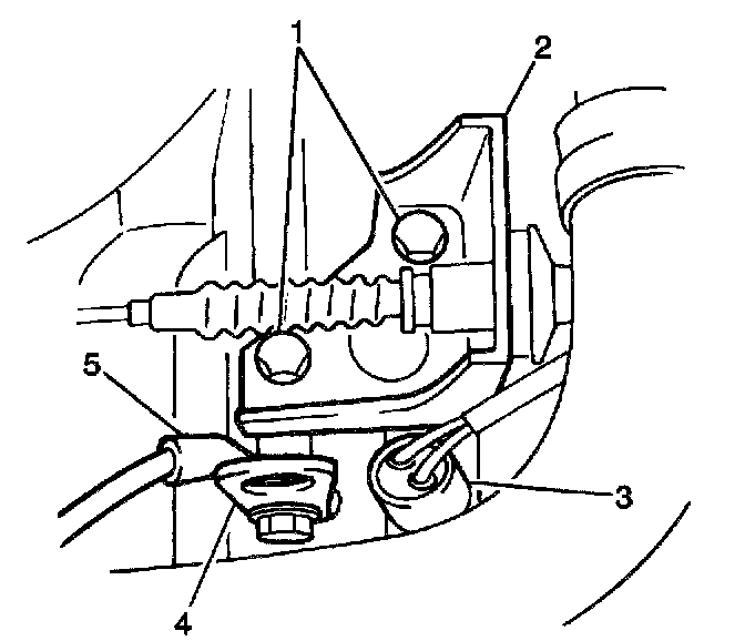 5. Remove the 2 clutch cable bracket bolts (1) from the clutch cable bracket (2). Set aside the clutch cable and the clutch cable bracket.