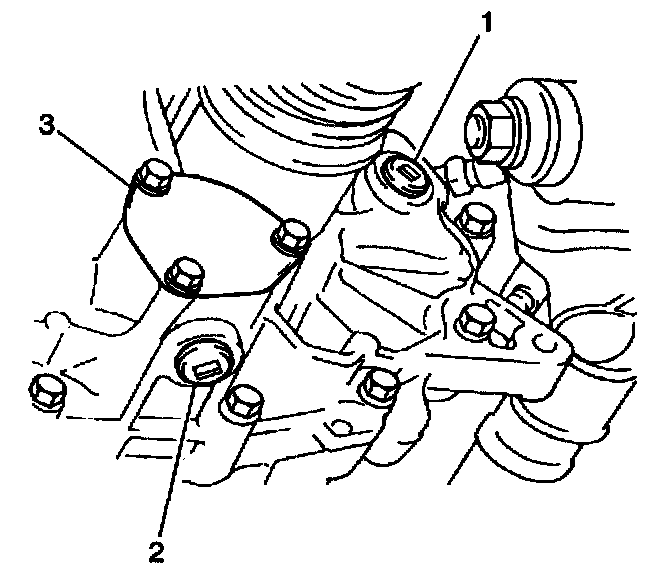 29. Remove the 3 bolts (1) from the left transaxle mounting bracket (2).